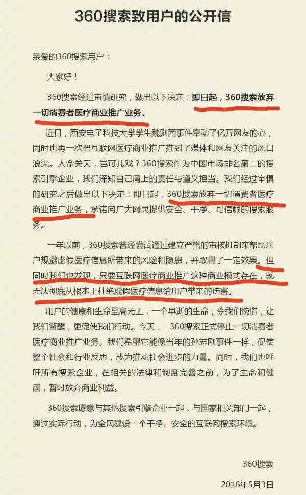“360搜索堅決拒絕醫(yī)療廣告,歡迎廣大用戶和競爭廠商的監(jiān)督!”