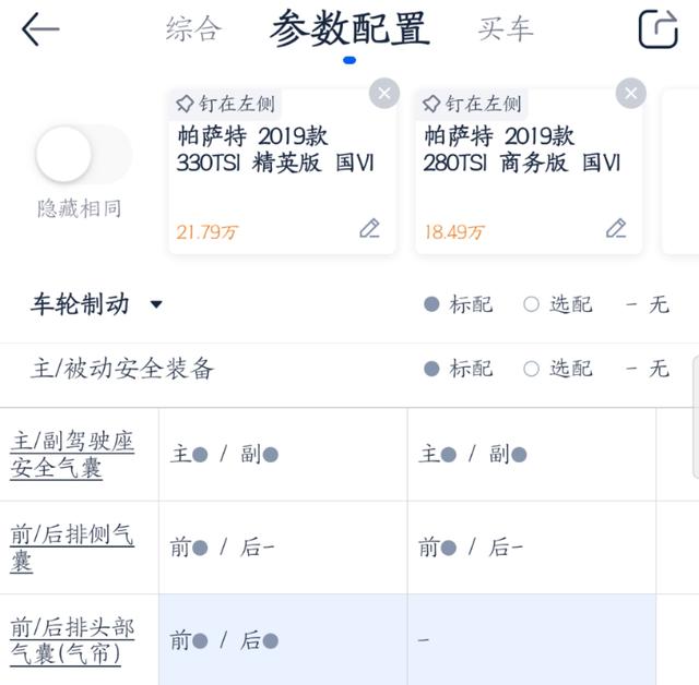 中保研對帕薩特測試車型為:SVW71423CT (2019款280TSI 商務版);中汽研對帕薩特測試車型為:SVW72023FV(330TSI 精英版);而330TSI比280TSI多了前后排頭部氣囊(氣簾)。這是不是刻意為之,也無從證明。