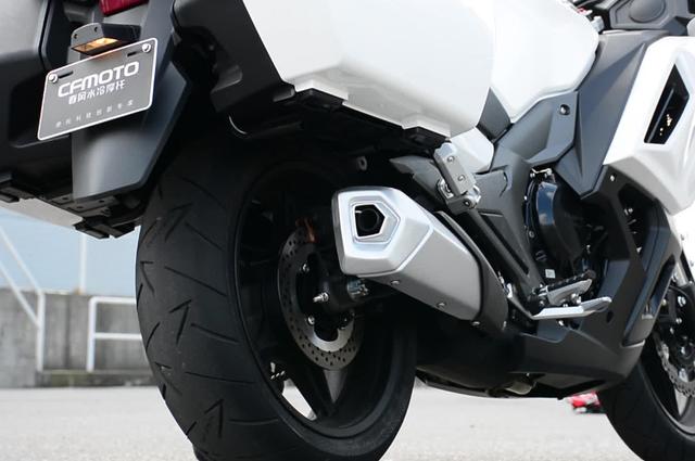 還有,這款車的車身尺寸為2210/998/1310mm,軸距為1415mm,最小離地間隙是140mm,座高780mm。整備質(zhì)量252千克,極跨是較為容易的,但重量較大,感覺不太容易控制。并配德國大陸馬牌輪胎,規(guī)格為前120/70ZR17后180/55ZR17,這一點非常優(yōu)秀。