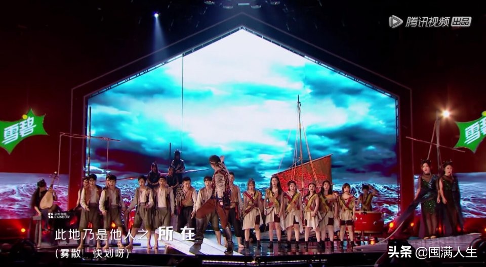 其實《乘風(fēng)破浪》歌曲本身的聽覺舒適感并不高。如果你不看畫面,只聽音頻,會聽得莫名其妙??墒沁@場演出的舞臺設(shè)計真是超贊,只要你看就能憑借視覺看出很多層次,看出人物、看出故事、看出驚險、看出豪情,再配合音樂上的氛圍營造,讓整個演出達到了優(yōu)秀音樂劇的震撼效果。面對這樣的對手,R1SE只依靠男團層面最好的作品,是不足以獲勝噠。