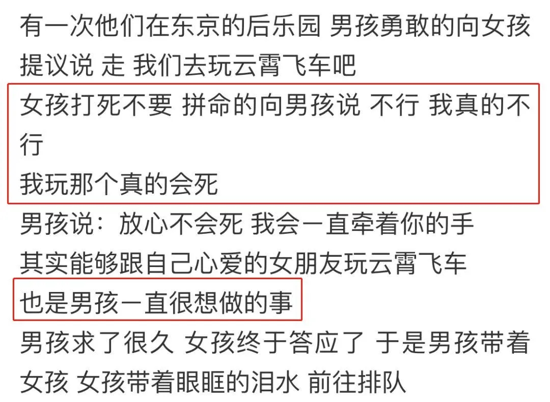 他還是帶著已經(jīng)快哭的她,排上了云霄飛車的隊(duì)!因?yàn)槟鞘悄泻⑾胱龅氖隆?/p>